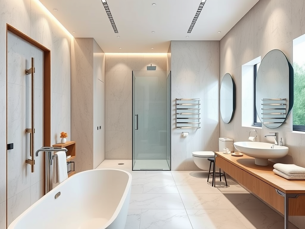 Modern Bathrooms: Shower and bathtub renovations, tile installation, smart mirrors, and modern plumbing systems.